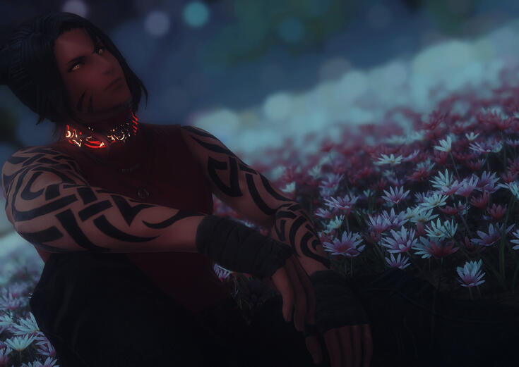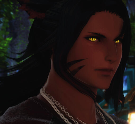 As they marched upon the battlefield they already knew their fates.. the opposing army had thousands more troops than they. Still determined they pressed on to the attack and fought a great many down to the last. With the two of them getting heavily exhausted it was only a matter of time before they were finally surrounded. Kaya at this time began chanting a forgotten and forbidden spell under her breath. As she was doing so, an enemy soldier charged at her and in her defense Shigeo blocked the blade. Only to have another one strike him. Before a blade was pierced through his chest, Kaya panicked and cast the spell upon Shigeo as the blade went through his heart. By casting the spell Kaya's life-force was now forfeit at the cost of doing so. The spell having been incomplete as well as being cast on a dying person, twisted and warped within Shigeo's body.Shigeo woke the next day amongst the thousands of bodies on the ground.. It took him a few more minutes to gather his thoughts about everything that was going on before he finally started to frantically search for Kaya.. Upon finding her that everything finally started to sink in.. The odd feeling that he had experienced while he was dying was a spell that Kaya must have been casting put onto him.. After having that finally settle within him, he slowly found the strength within him to pick Kaya's body up and carry her to a rather decent place to bury her.. Away from the battlefield and the scenery of death from the leftovers scars of war. After having stayed there for what must have been hours he could no longer bear staying there anymore, but without Kaya, without a home, and further more without a purpose he no longer knew what he should do or where he should go.. After a few moments more he picked himself up and walked away... For years he traveled the lands, drifting from one place to another for what felt like eons. Thus did it cross him, that death would never truly reach him. Having being brought to the point of slaughter only to still reawaken later the next day or so, depending upon how badly his body was mangled.Having traveled for so long and having distanced himself from other humans he nearly forgot how to interact fully with them. It wasn't until he saw a family living on the outskirts of a small village being robbed by a gang of raiders that knocked him to his senses. Seeing the small child being knocked around and threatened by the raiders did anger well up deep within Scavar again. Acting immediately he burst forth from the woods so with such intensity it completely stunned the raiders causing them to be butchered where they stood before having even realized what had happened. This caused the family to be even more terrified immediately of the new intruder now standing before them with the bloody mess of the bodies of those whom had just previous threatened their very lives. Seeing the terrified looks of them, Scavar wasn't sure what to say or do to help the family calm down and decided it was best he vanished as fast as he appeared and proceeded to dash away. It didn't settle until later that just maybe this seemingly infinite life he had might have been given to him in response to help others.. but perhaps a little more restraint would be needed. So he then finally traveled forth down whatever road he found with his new purpose. Through his travels he came to learn his new lifestyle was rendered incapable of magic due to what ever magic kept him from truly dying. Avoiding to try and further test that theory he just let it be as is.On one of his peculiar travels he began to hear the voice of higher "?being?" The entire situation seemed highly impeccable and then he fell to the ground in a deadly amount of ?pain? as it felt like his entire body was being shifted, but completely unlike that of what he was used to. It wasn't long until he fully lost consciousness and blacked out that things finally happened. When Scavar came back to, he slowly sat up as his entire body felt as if a giant boulder had fell upon his entire body.. He then slowly took in the scenery before him. Finding himself surrounded by what seemed like earthen crystals? He shook his head trying to shake all the thoughts from his head. There wasn't even an answer from what ever voice seemed to have ?summoned? him. Perhaps it had something to do with whatever spell or curse as he would sometimes call it that was keeping him alive. Either way he was here now so he set about to explore these new lands to him. Having only found out a short time later that these were what appeared to be the lands of Eorzea.